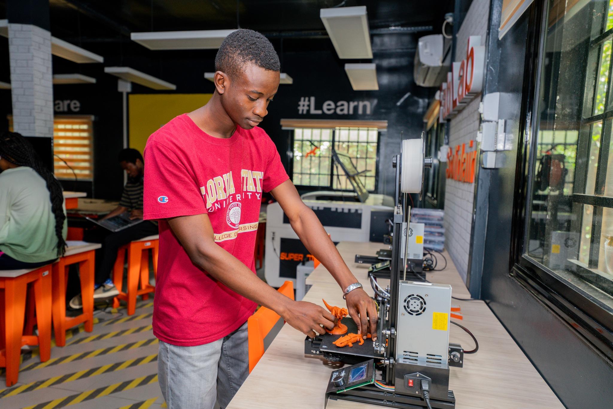 Le FabLab Solidaire d’Orange Digital Center Guinée est un espace de travail regroupant toutes sortes d’outils permettant aux apprenants de passer de l’idée à l’objet. Il est ouvert à tous, et offre la possibilité aux jeunes d’apprendre, de fabriquer et de partager leurs savoir-faire.